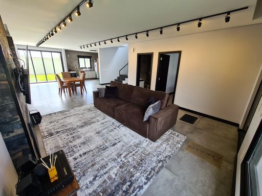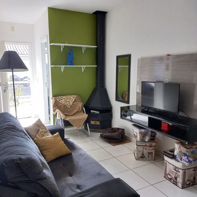 Casa à venda em ótima localização no condomínio com frente norte/nordeste, garantindo excelente luminosidade e fácil acesso às áreas de convivência. Possui dois dormitórios, cozinha planejada de alto padrão, churrasqueira integrada para momento em familia e amigos, fogão a lenha, sala de estar com lareira, ar-condicionado e área de serviço coberta. Ambientes funcionais e acolhedores, com obra assinada por arquiteto. Condominio com portaria 24hs, vaga privativa e condomínio com estrutura completa com salão de festas, quiosques, espaço fitness, pets, praças e mercado 24h para maior praticidade o dia-adia.