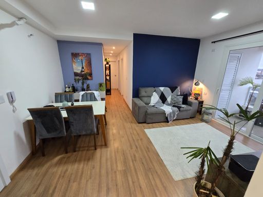 Imagine-se em um apartamento impecável, onde o bom gosto e a sofisticação se destacam em cada canto. Com uma posição solar privilegiada e ambientes totalmente planejados, este imóvel é o perfeito equilíbrio entre estilo e funcionalidade. Os dois dormitórios (sendo um deles suíte) oferecem conforto e praticidade. A marcenaria de alta qualidade está presente em todos os ambientes, garantindo organização e charme, enquanto a iluminação em LED cria uma atmosfera acolhedora e moderna. Quarto casal: Guarda-roupas com portas de correr (espelhadas e lisas), cama casal com colchão e protetor impermeável, criados-mudos embutidos com luz de LED. Quarto solteiro: Cama principal e auxiliar, guarda-roupas com folha espelhada, cadeira de escritório e luz de LED na prateleira. Sala: Painel ripado com TV 50", rack, divisão com bancada e banquetas, Split e móvel planejado. Sala de jantar: Mesa redonda com 4 cadeiras, tapete em couro, aparador e armário embutido com acabamento ripado ao lado da churrasqueira. Cozinha: Bancadas e acabamentos em granito preto, equipada com eletrodomésticos de alta qualidade, como geladeira 435L, lava e seca, cooktop, forno embutido, e muito mais! 2 banheiros completos com balcões, espelhos e box de vidro. 1 vaga de garagem.