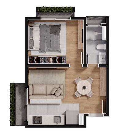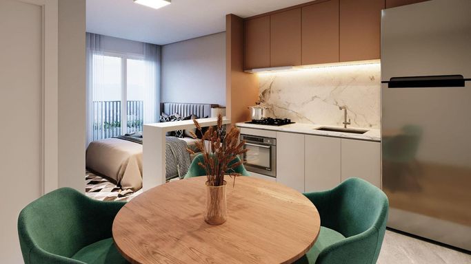 Com 38m², este apartamento 1 quarto oferece planta funcional, vaga de garagem e excelente aproveitamento dos espaços. Condomínio com área de lazer completa, incluindo salão de festas, academia e lavanderia, proporcionando mais conforto e comodidade.