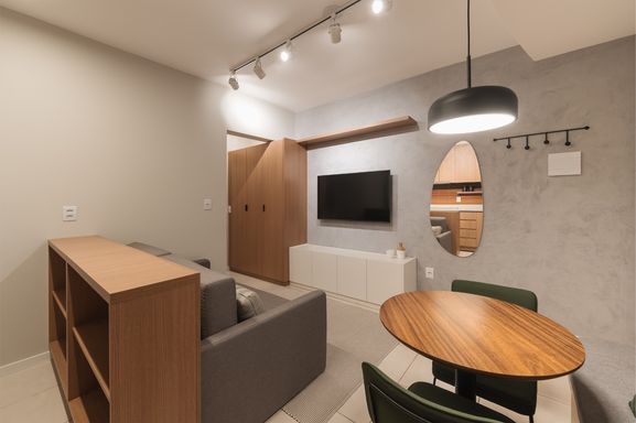 O imóvel de 1 dormitório, totalmente reformado, mobiliado e decorado, conta com projeto assinado por arquiteta, móveis sob medida, iluminação planejada, eletros completos e excelente iluminação natural, pegando o sol da manhã garantindo conforto e praticidade.