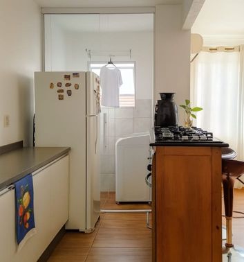 O bem-estar é garantido com piso laminado, teto em gesso, porta de madeira maciça e móveis planejados. O imóvel conta ainda com três ar-condicionados, cozinha com móveis e área de serviço, sala de estar com sofá e mesa, 2 dormitórios sendo 1 com roupeiro e cama de casal.