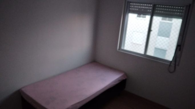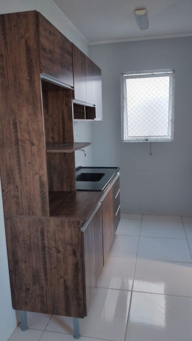 Apartamento bem iluminado, sol da manhã, com 2 dormitórios, sala e cozinha integradas, área de serviço, banheiro e vaga de estacionamento.