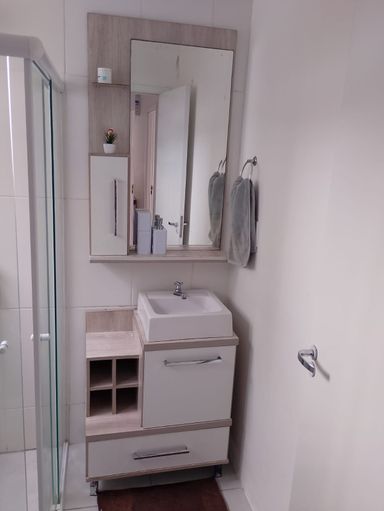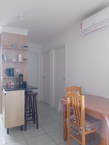 O imóvel está no 5º andar, em ponta de bloco, com total privacidade, sem janelas vizinhas. Conta com cozinha com móveis planejados, sala aconchegante, dois quartos, banheiro e espaço para churrasqueira com porta de vidro. Possui ventiladores de teto em todos os cômodos, proporcionando conforto térmico.