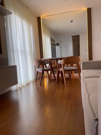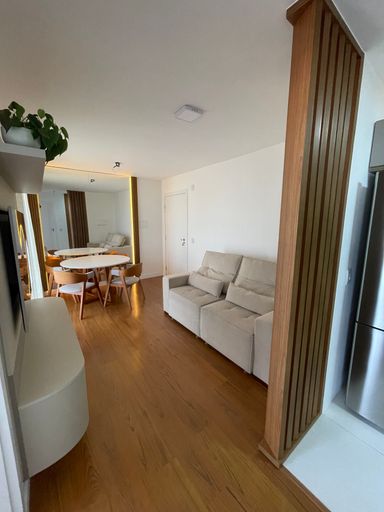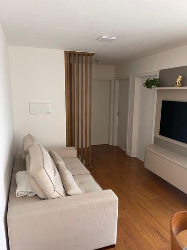 O apartamento possui 2 dormitórios, sendo 1 suíte, sala aconchegante com sacada e churrasqueira para curtir momentos em família e amigos. Cozinha com móveis planejados, pia em quartzo e acabamento em pedra Branco Prime. Possui piso laminado Quick-Step resistente à água e ambientes bem distribuído, além de uma vaga próxima ao bloco.