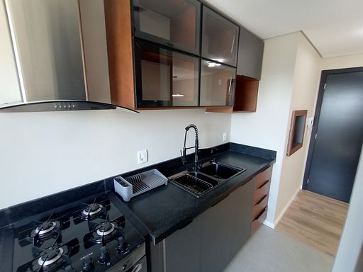 O apartamento conta com dois dormitórios, sendo uma suíte, planta bem distribuída e ambientes confortáveis. Já está locado, o que o torna perfeito para investidores que desejam retorno imediato, sem período de vacância.