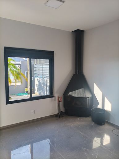 O imóvel é novo, nunca habitado, com dois quartos, sala com lareira e cozinha com bancada. Possui rebaixo em gesso com iluminação em LED, churrasqueira, além de pátio na frente e nos fundos com espçao para colocar piscina, paisagismo com grama e espaço para horta, proporcionando conforto e qualidade de vida.