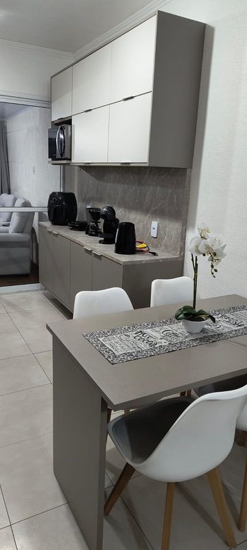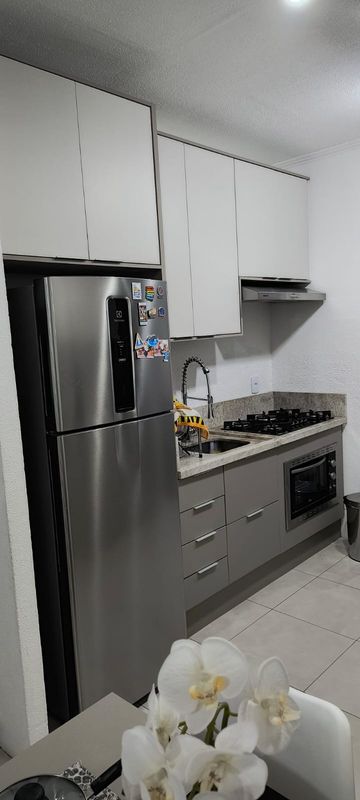 2 suítes, sala com lareira, cozinha planejada e aumento com churrasqueira, 1 vaga de estacionamento.