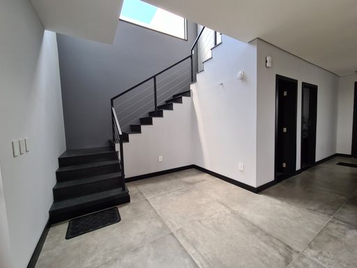 Construída em steel frame, a casa garante excelente conforto térmico e acústico, sem problemas de umidade. Conta com automação residencial, persianas elétricas, sistema de captação e reaproveitamento de água da chuva, geração de energia solar, aquecimento de água a gás e esperas para instalação de elevador.
