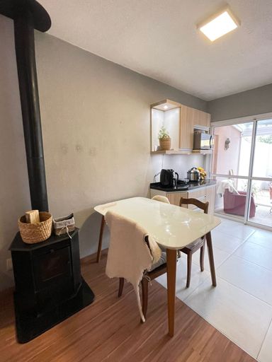 O bem-estar é destaque com 3 quartos, sala de estar e cozinha em ambiente integrado, ampliação do pátio com pergolado em vidro, piso flutuante e porcelanato, banheiro reformado, calefator e churrasqueira. A casa permanece equipada com móveis planejados, oferecendo conforto imediato.