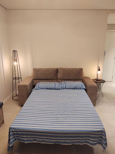 O imóvel é um loft mobiliado com ambientes integrados e sacada, pronto para uso, oferecendo um ambiente moderno e funcional. Possui 38 m² de área privativa e conta com uma vaga de garagem. O prédio oferece estrutura de lazer com salão de festas, sala de jogos e academia, proporcionando mais conforto e qualidade de vida.