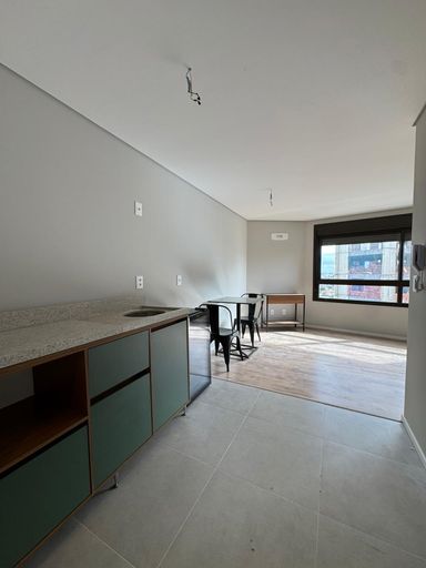 O imóvel é moderno e aconchegante, ambiente integrado, excelente iluminação natural, ventilação, cozinha já com móvel e também ar condicionado.