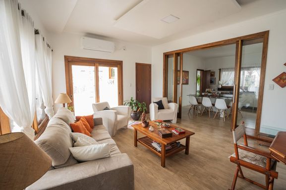 Com 5 dormitórios, sendo 2 suítes, 4 banheiros, 1 lavabo, ampla sala para três ambientes, cozinha, lavanderia e dependência, a casa proporciona bem-estar e praticidade. O quiosque de 50m² e a piscina tornam o ambiente perfeito para receber amigos e aproveitar momentos de lazer.